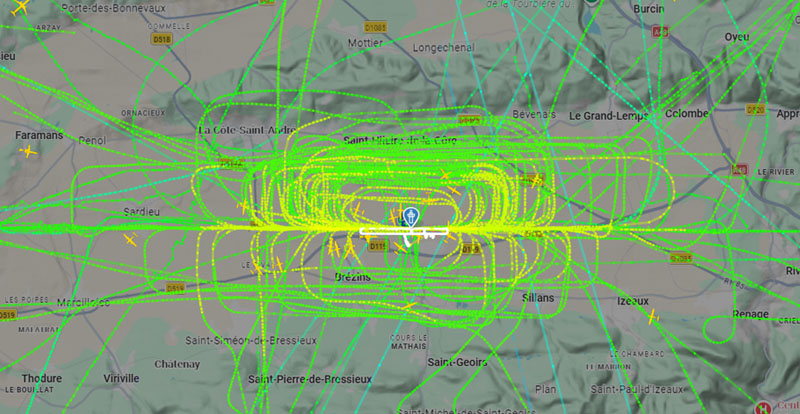 De grosses nuisances toute la journée, principalement jusqu’en fin d’après-midi. Des tours de piste majoritairement au nord de l’Enac (dont certains non visibles sur Flightradar), des tours de piste matin, midi, après-midi uniquement au nord du HB-LMB Lufthansa Aviation Training (Suisse), des tours de piste d’un Dassault Falcon 7X avec passages systématiques sur les hauteurs, des tours de piste d’avions non visibles sur Flightradar (comme les tours de piste de l’aéroclub du Dauphiné F-GNXT ou de l’aéroclub de Vienne F-PPPS). Pourquoi avons nous des Suisses qui viennent s’entrainer ici ? Pourquoi avons nous autant d’avions non basés qui viennent faire des tours de piste ici ? Non ce n’est pas normal !!! Des nuisances de nombreux aéroclubs non basés (F-HVTG Annecy, F-GPAP Chambéry, F-HGPZ et F-HSTG Grenoble le Versoud, F-HLIC Valence, F-PPPS aéroclub de Vienne, F-JGEK N/A, F-GCLT Avnir Aviation Lyon Bron, N170SG N/A, F-GBAY Morestel, et le soir avec tours de piste F-HTPG Valence, N446BD Lyon Bron) et basés (aéroclub du Dauphiné F-GNXT, F-GJAD GEA). Des nuisances d’avions en approche sur Lyon, d’avions et de jets en direction ou en partance d’ici, d’Oyonnair et d’avions non visibles sur Flightradar.