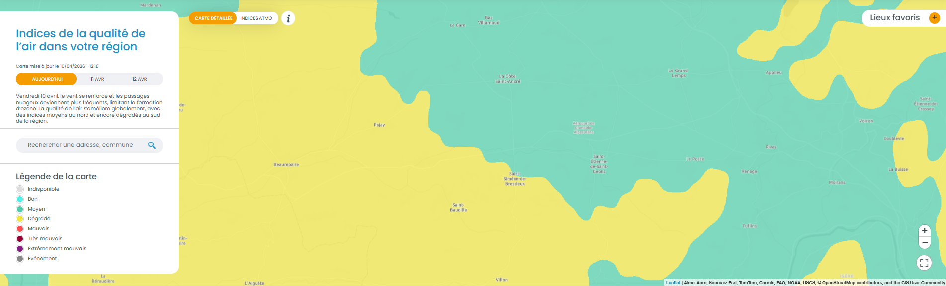 Qualité de l’air du jour : « Moyen / Dégradé »